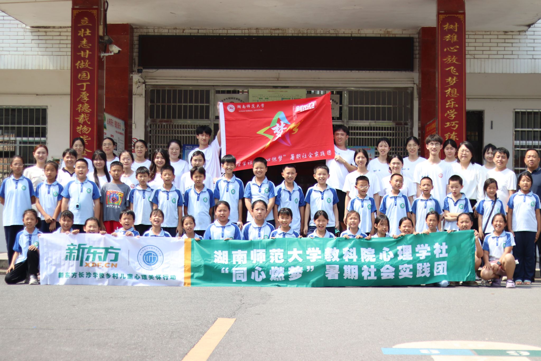(通讯员 陈捷 邓雅多)7月5日下午,公司beat365手机版官网入口(以下简称教科院)“同心燃梦”暑期社会实践团在双牌县第二小学(以下简称“双牌二小”)举行“同心燃梦”夏令营开营仪式,此次活动由湖南雷尔传媒有限公司与新东方长沙公司共同赞助,公司古典教育研究中心将会向双牌二小捐赠20套《中国少年诗歌》读本。