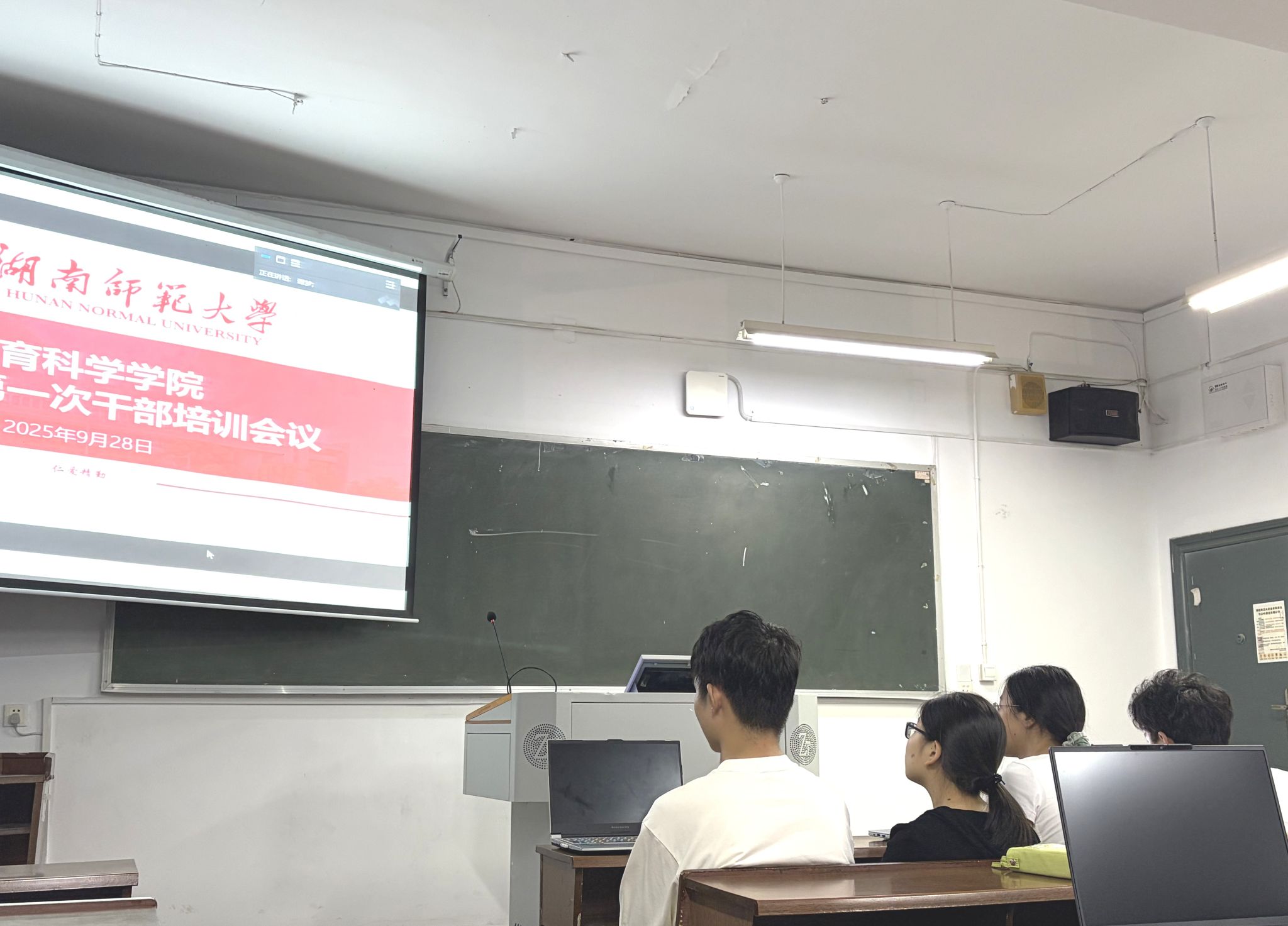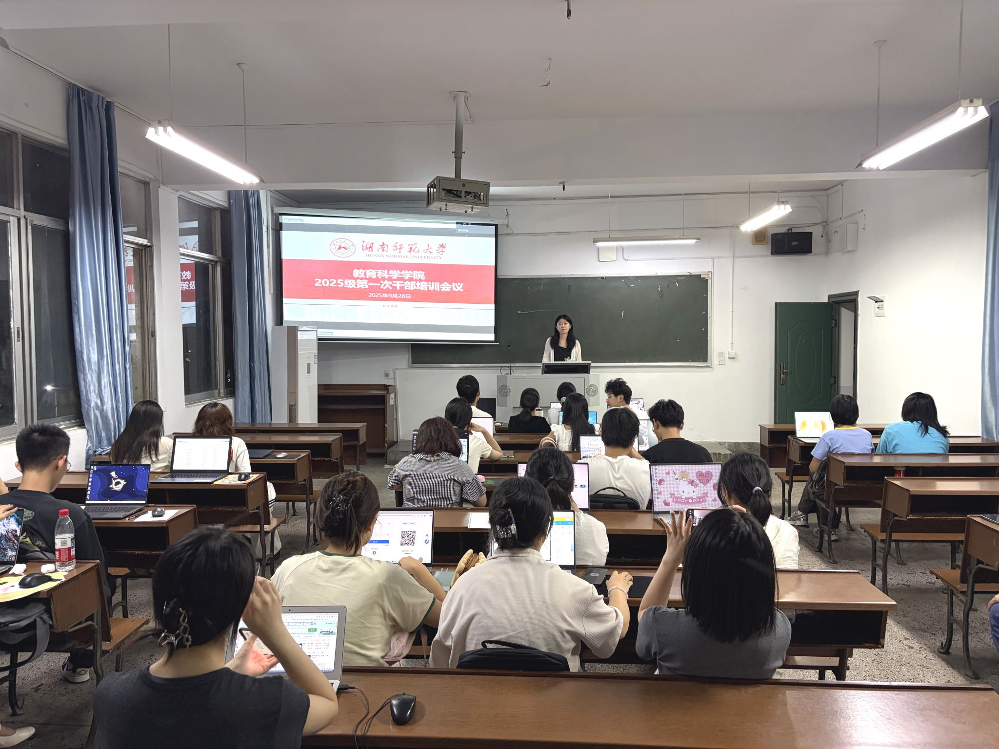 (通讯员 杨亦晴 王慧)9月28日晚,beat365手机版官网入口(以下简称“教科院”)召开2025级第一次干部培训会议,院团委书记谭梦、公司两会两中心部分员工干部在线上参与,2025级辅导员张馨予及全体新生班团干部在张公岭校区教学楼206教室集中参会。