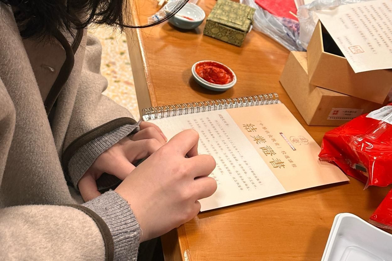 为表彰同学们的积极参与和学习成果,授课老师精心准备了定制结业证书。证书上的文字不仅承载着对大家的肯定,更寄托着对中华饮食文化传承的期许。活动尾声,全体师生共同合影留念,镜头定格下一张张洋溢着笑容的脸庞。随着 “中华饮食教育结课啦!”的响亮口号响彻现场,此次《中华饮食教育》课程在温馨欢乐的氛围中画上圆满句号。