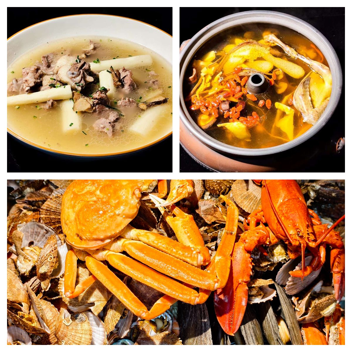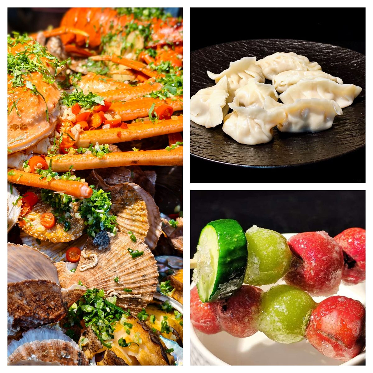 课程结课实践环节中,师生分工明确、默契配合,沉浸式体验美食制作的全过程。从馅料调制到包捏成型,鲅鱼馅饺子鲜嫩多汁、猪肉白菜馅饺子鲜香适口、羊肉大葱馅饺子醇厚浓郁,三款经典饺子各具风味;羊肉正气汤暖心暖胃,汽锅鸽子汤清润滋补,尽显中华饮食“药食同源”的智慧;海鲜大咖汇聚鲜美元气,冰糖葫芦酸甜适口,兼顾南北风味与时节特色。每一道美食的诞生,既是对节气饮食传统烹饪技艺的传承,也是师生协作精神的生动体现。