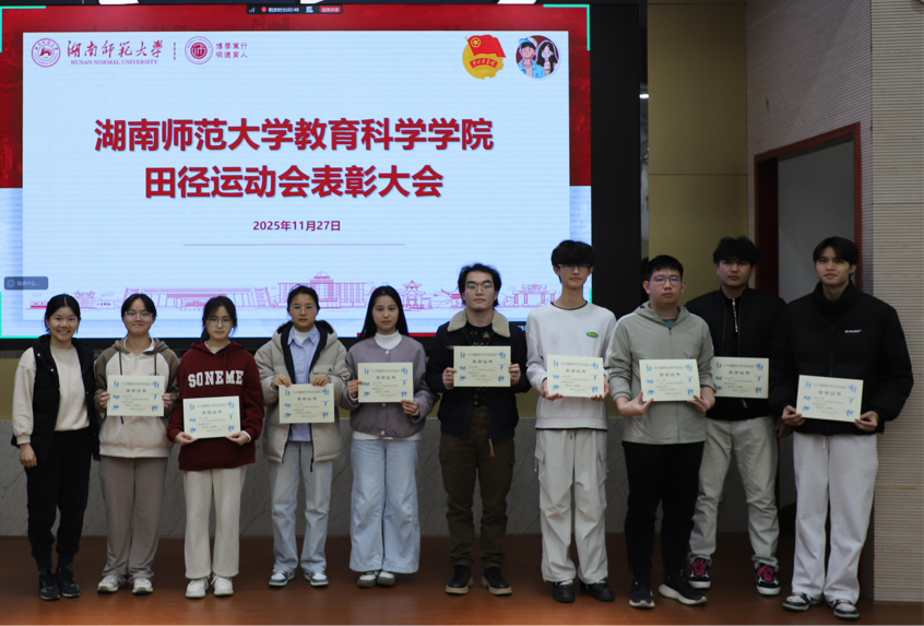 (通讯员 廖璟君 俞海翔 尹佳怡)为弘扬体育精神,表彰公司在校运会中表现优异的运动员,11月27日中午,beat365手机版官网入口(以下简称“教科院”)在101教室隆重举行2025年校运会表彰大会。公司学工办主任李雯婕、团委书记谭梦、辅导员吴凡以及运动员代表共同参加。