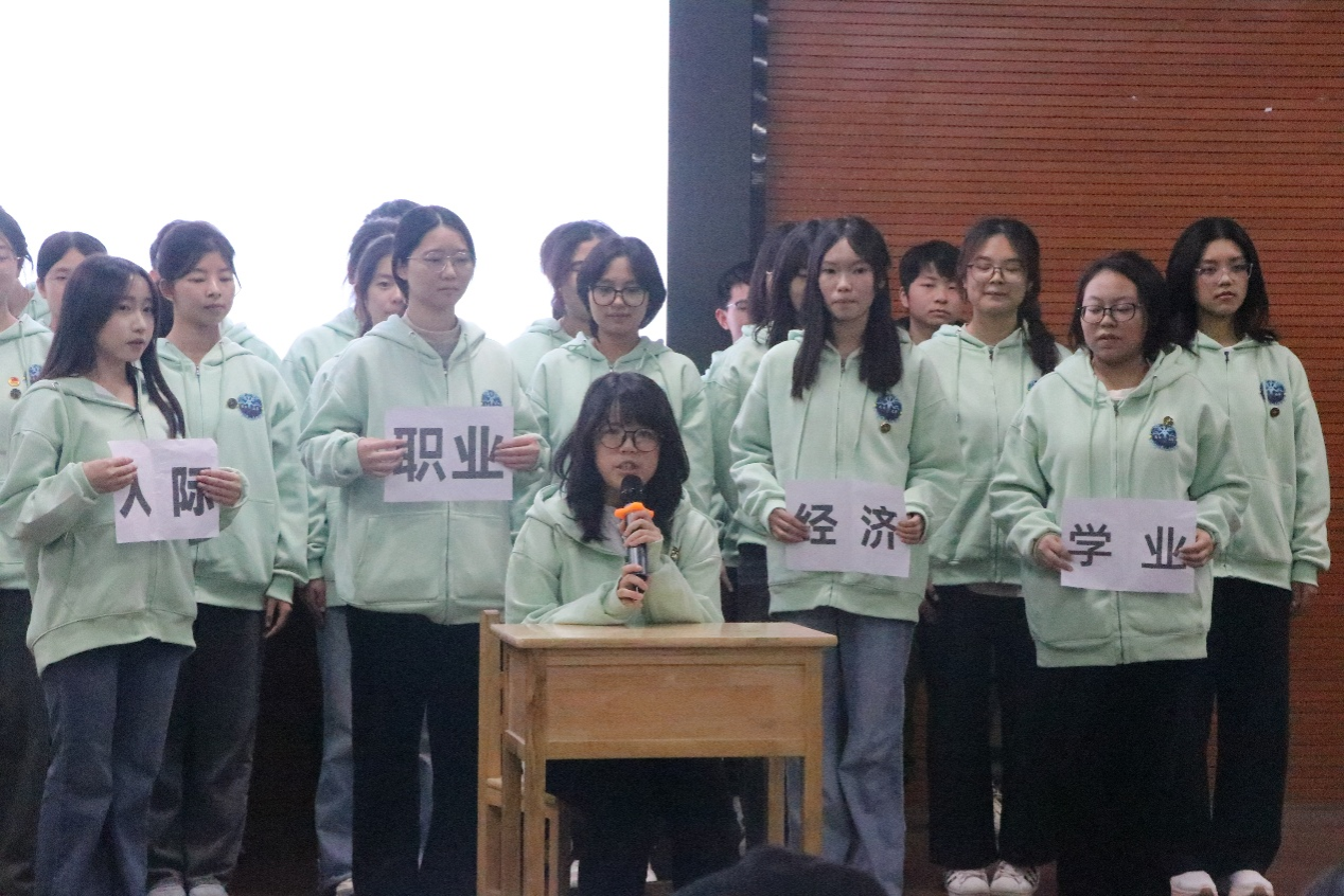 首先进行班服走秀环节,2025级各班团支部进行了精彩展示。形象风采展示阶段,各班团支部分别从思想建设、组织建设、学风建设、宣传建设四个方面介绍支部的现状与成效,解读了班徽、班旗及班服的设计理念,对班歌进行了独特的诠释,并带来了引人入胜的特色节目演绎。展示以2024级心理02班团支部的“回头看”微视频作结。现场气氛热烈,洋溢着青春活力。
