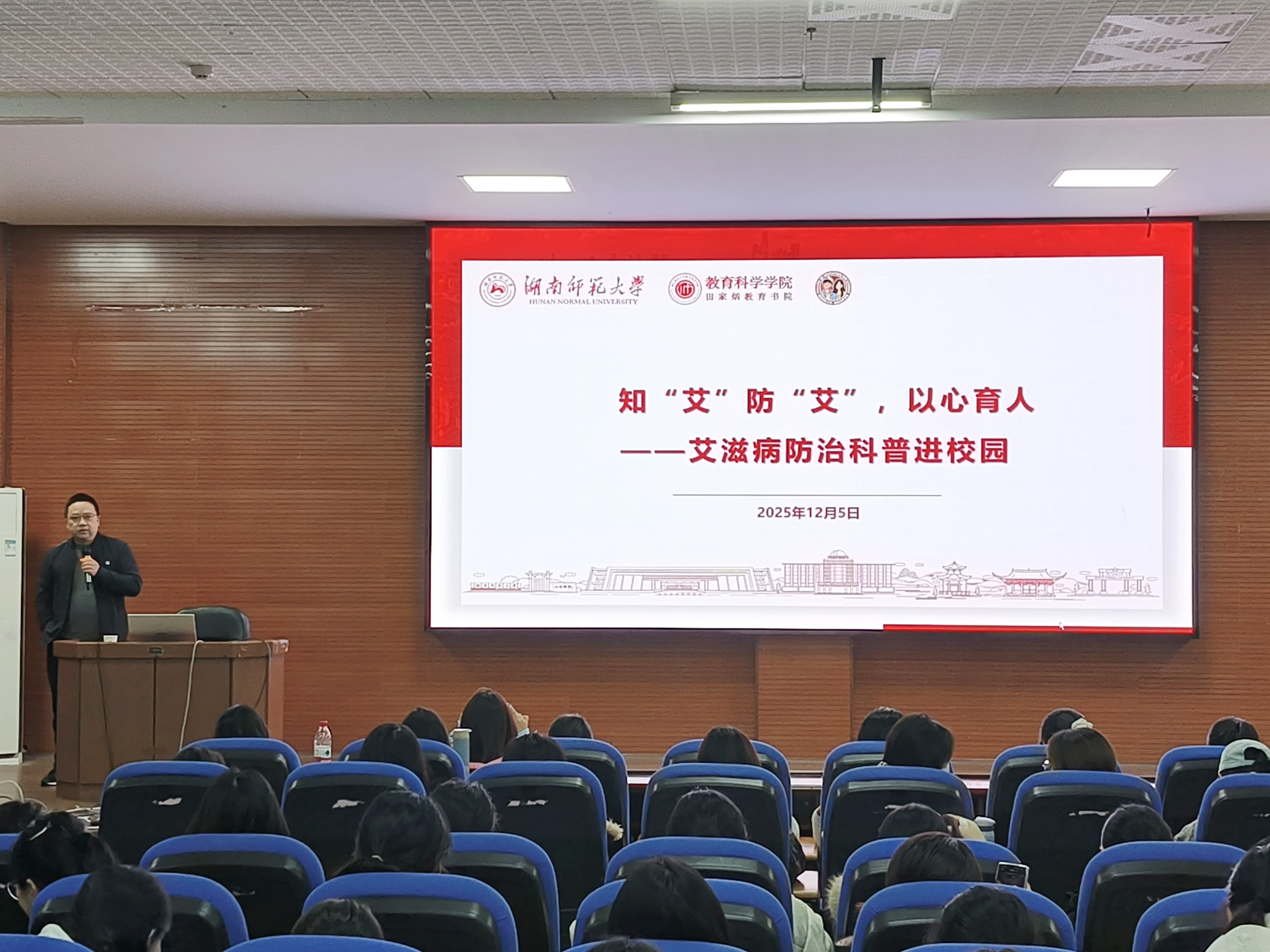 (通讯员 王文芳 袁嘉怡 苗可欣)为深入贯彻预防艾滋病传播“六大工程”部署要求,全面落实教育部、国家卫生健康委及国家疾控中心关于高校艾滋病防控工作的相关精神,12月5日,我院在张公岭图书馆报告厅举办艾滋病防治知识专题讲座。长沙市第一医院感染与免疫科副主任医师刘意心受邀主讲,讲座由2025级辅导员张馨予主持。