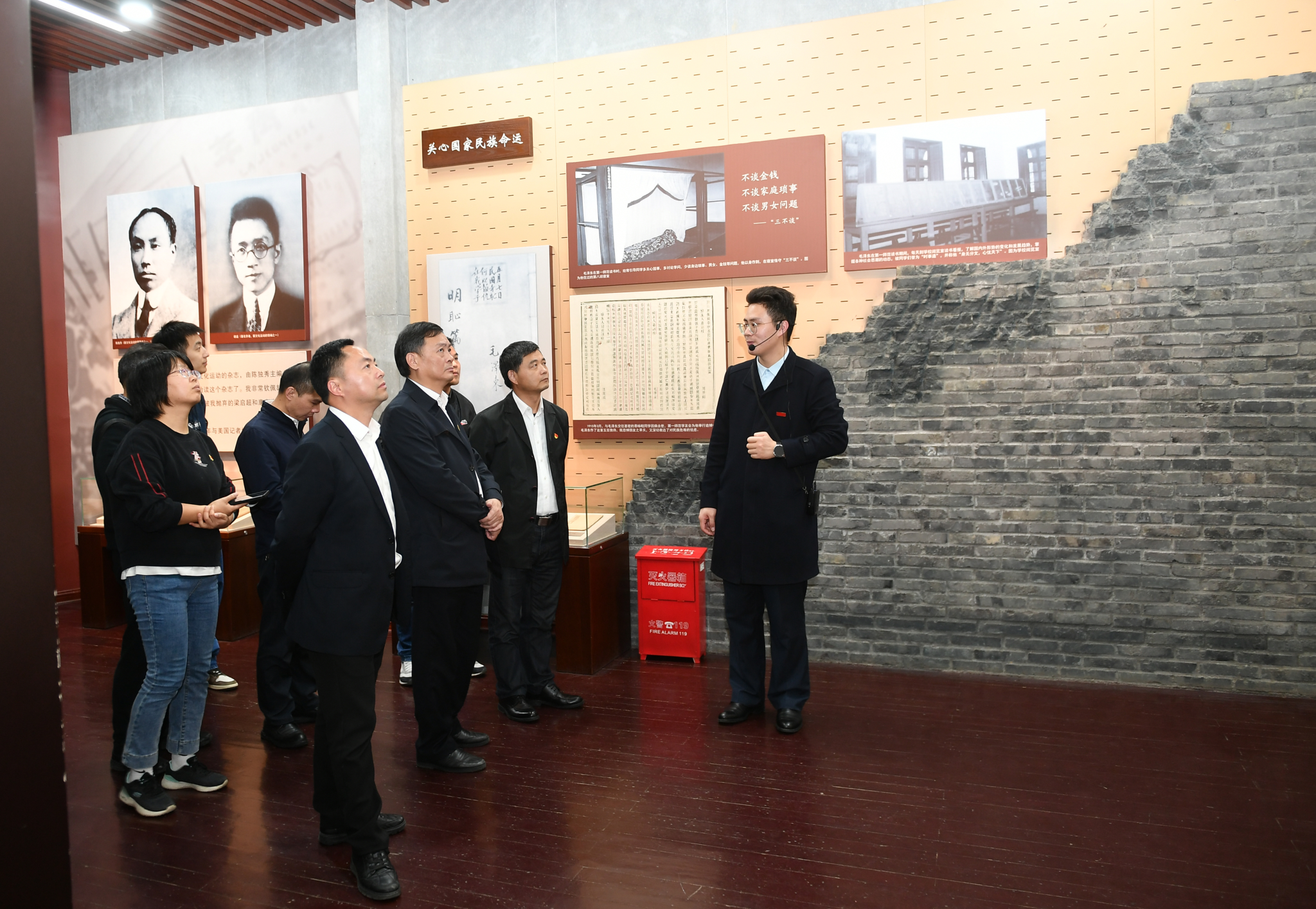 在毛泽东与第一师范纪念馆,大家跟随讲解员的脚步,沿着青年毛泽东成长的足迹,细致了解毛泽东在此求学、执教以及从事早期革命活动的故事,通过展厅内生动的图片、文字与讲解员精彩的阐述,感悟一代伟人及革命前辈们为国为民、心忧天下的崇高精神和家国情怀。