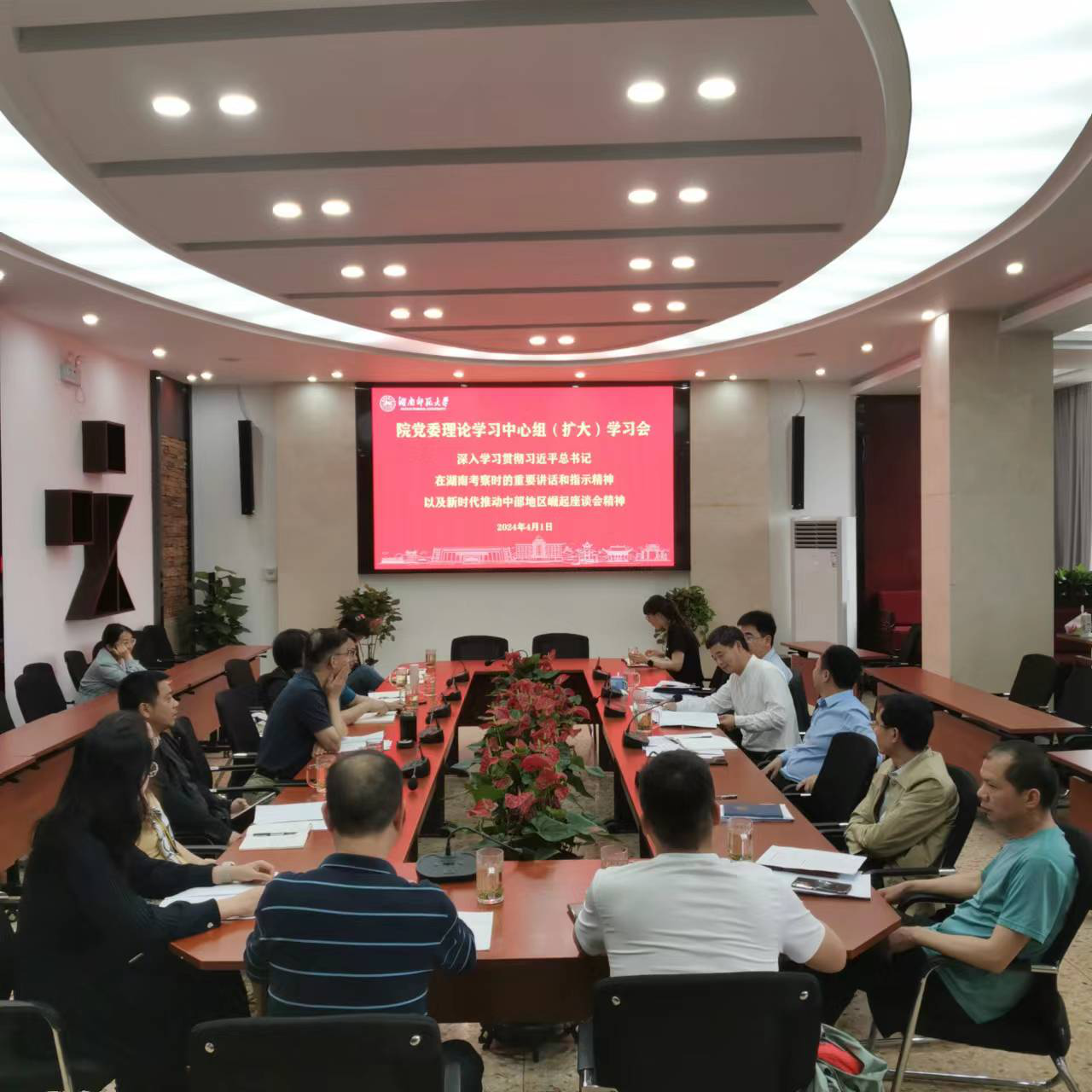 4月1日下午,公司党委理论学习中心组(扩大)在公司七楼会议室召开学习会,深入学习贯彻习近平总书记在湖南考察时的重要讲话和指示精神以及新时代推动中部地区崛起座谈会精神。公司党委书记鲁良主持会议。