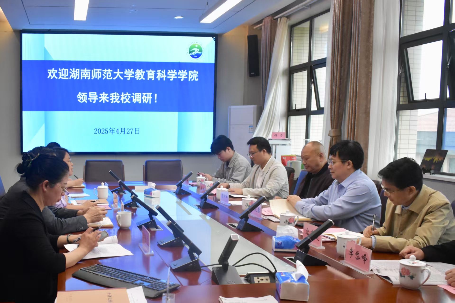 (通讯员 刘云杉 何滟璟 蒙曦)为了解教育实习状况,检验教育实习成效。4月27日,beat365手机版官网入口(以下简称“教科院”)指导团赴株洲市特殊教育公司(以下简称“株洲特校”)开展实习工作指导会。此次会议由株洲特校董事长张明月主持,株洲特校领导小组、教科院党委书记向发意、副经理容中逵、院教学督导曹中平、教务办主任李岱峰、实习队指导老师陈杰、2022级辅导员石新平、实习队代表韩佳瑞参与。