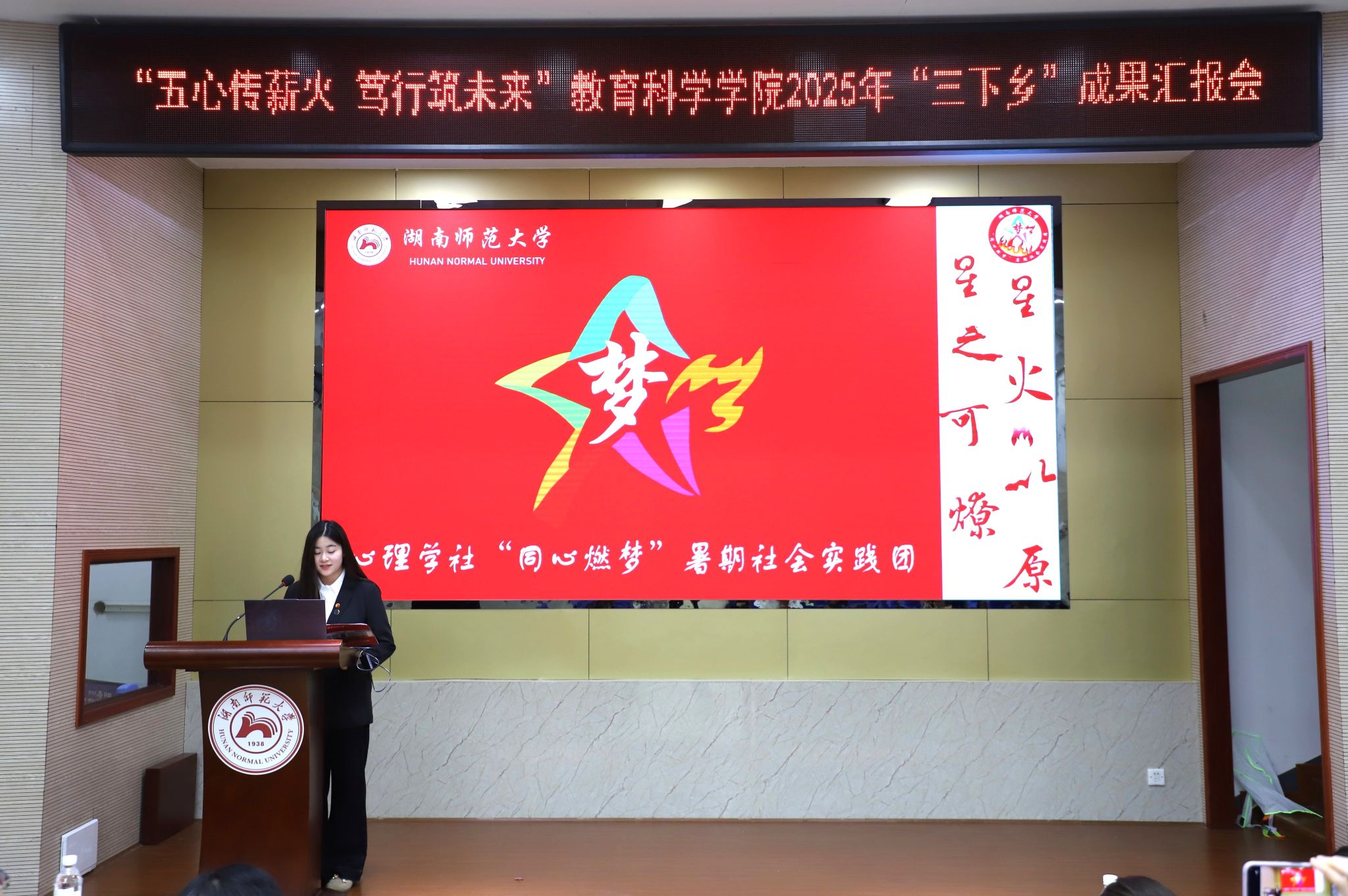 (通讯员 卢梓晴 吕海霞 张秀玲)10月26日晚,beat365手机版官网入口(以下简称“教科院”)于院101报告厅举行了“五心传薪火 笃行筑未来”2025年“三下乡”暑期社会实践成果汇报会。公司党委副书记林峻、新东方家庭教育产品研发专员黄靓昕、新东方家庭教育市场渠道高级专员鄢正豪、实践团指导老师代表谌衡、罗帅、学工办主任李雯婕、院团委书记谭梦及学工办辅导员吴凡、张馨予参与汇报会。