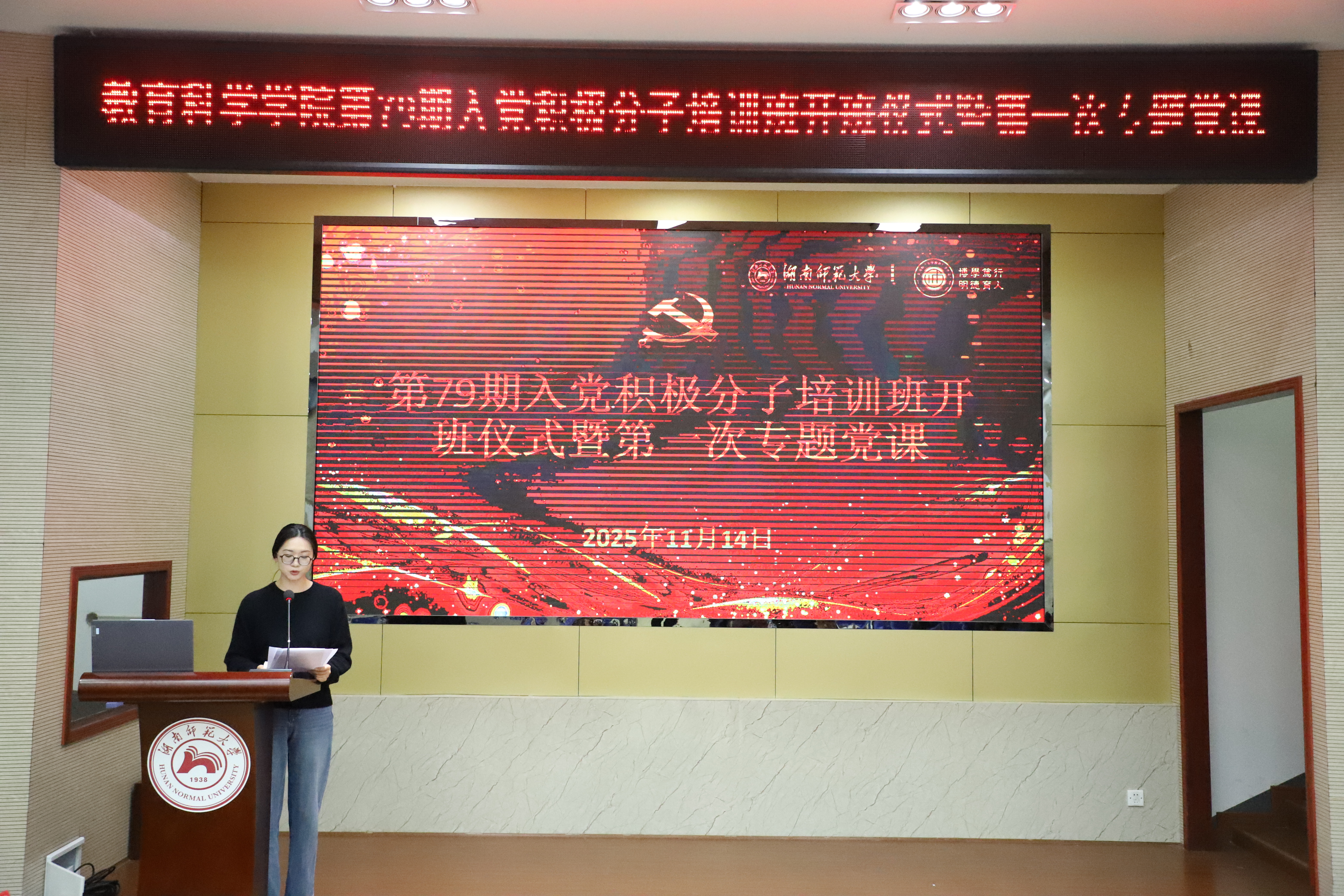 随后,林峻主讲第一次专题党课《端正入党动机,坚定入党初心》。她从“动机认知的重要性”“端正动机的必要性”“坚定初心的可为性”三方面展开,以习近平总书记相关论述为引领,通过方志敏、李大钊、陈树湘等事迹,阐释马克思主义信仰、中国式现代化与新时代青年担当。课程理论联系实际,富有感染力。最后,全体学员齐诵“伟大建党精神”,将氛围推向高潮。