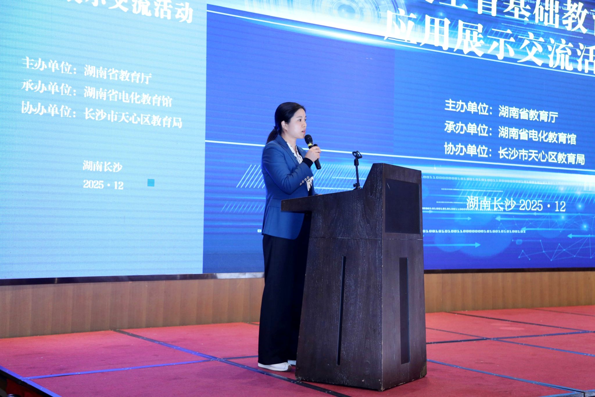 (通讯员 颜佳慧)12月12日上午,公司教育技术学系刘娟副教授应邀参加湖南省教育厅主办、湖南省电化教育馆承办的“2025年度全省基础教育数字化应用展示交流活动”。本次交流活动围绕教育数字化+AI融合创新主题,基于国家中小学智慧教育平台,通过现场说课、专家点评等形式,针对教师的数字素养与胜任力提升,深入探讨数字技术与学科教学融合创新的方法与模式,促进优质数字教育资源推广应用。活动现场人员来自各市州和省直中小公司的精品课例展示团队成员,市州、县市区中小学教师代表、电教部门负责人等上万人线上线下同步观摩初中英语、道德与法治,小学英语、道德与法治共四个学科、十六个精彩课例说课展示。