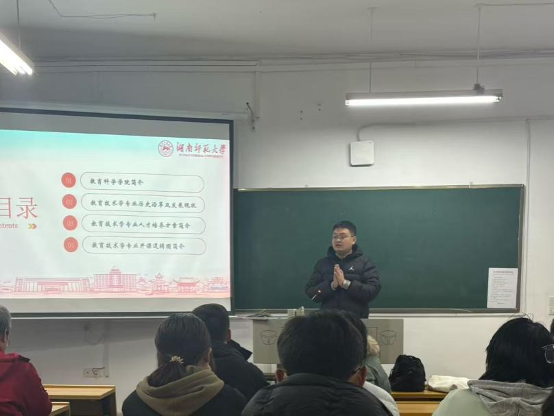 (通讯员 王卓楠 邓小燕)2026年1月4日晚上,公司教育技术学系在张公岭校区教学楼108举行新年师生交流会。会议由教育技术学系主任周炫余、彭绍东教授、刘帅教授、张青教授等8名教师,以及2025级教育技术学班全体同学共同参与,白蕴琦老师担任本次会议主持。