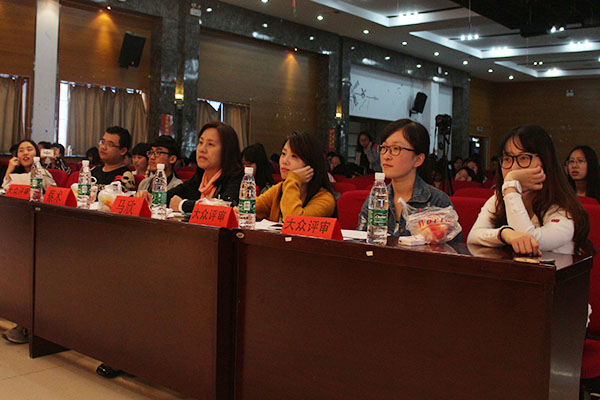 比赛由教科院学工办主办、院员工会承办、语言艺术社协办,旨在把员工常见的心理问题和相应的解决办法以心理剧的形式展现出来,扩展员工的心理知识储备,提高员工的心理健康水平。2015级心理班的作品《我能和你说说话吗?》,反映了当下员工沉迷于电子产品而产生的孤独感;语言艺术社带来的《让我握住你的手》展现了主人公的命运起伏,演绎了不同的人物形象。其他作品对老员工在学习与工作之间、爱情与友情之间的纠结、迷茫心理等都有所展现。