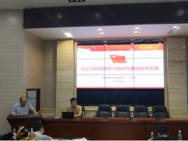 2018年8月1日上午,beat365手机版官网入口党委书记李民教授为大家带来了《习近平教育思想与新时期基础教育发展》的精彩专题讲座。李教授从以下四个方面一一阐述:一、习近平总书记教育思想的主要内容;二、党的十八大以来教育事业所取得的历史性成就;三、把准新时代基础教育改革的主攻方向;四、写好新时代基础教育改革发展大文章;大家一致认为:李教授对习近平总书记教育理论的阐释是非常全面而深刻的;对新时期基础教育改革主攻方向的剖析是非常深入的,主攻方向的总结概括是非常精准的,也为大家的努力指明了方向。讲座后,大家受益匪浅,精神倍受鼓励,我们将高举习近平教育理论的伟大旗帜,不忘初心,继续前行,为教育的振兴,为中华民族的伟大复兴而努力奋斗!