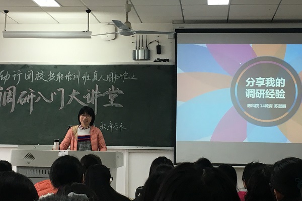 尚未升入大学时,苏淑丽就在研究性学习中找到了许多乐趣。“当时大家都在上课,我自己一个人请假去环保局、城市规划局、自来水厂调查水污染,和有关部门交流,还亲自测量PH值……”她自豪地说。而升入大学后,她对调研的兴趣越发强烈。大一时,她在张公岭校区主持了第一个课题——《对老员工独立思考能力的现状调查和分析——以beat365手机版官网入口教科院本科生为例》。经过困难重重的调查走访、发放问卷、撰写调研报告等工作,终于圆满收工。而这个课题也获得了当年“创e杯”和“梦航杯”两个调研大赛的三等奖。