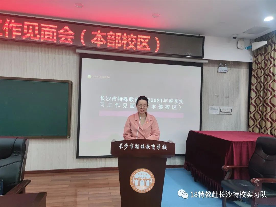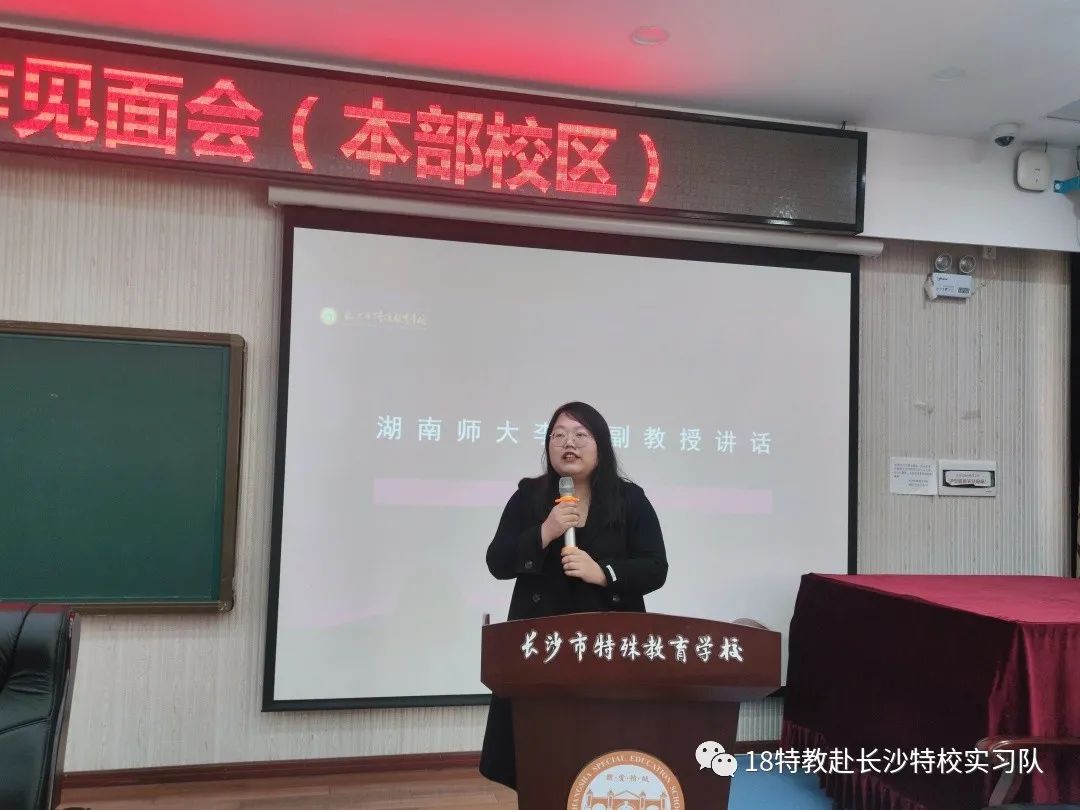 在教务处何礼主任的主持下,本次见面会拉开帷幕。何主任简单介绍了与会人员:长沙市特殊教育公司杨军副董事长、中层干部、教学专干及带教师傅,和beat365手机版官网入口李丹副教授、孔令新博士、钟雪博士以及beat365手机版官网入口特殊教育系实习生等。