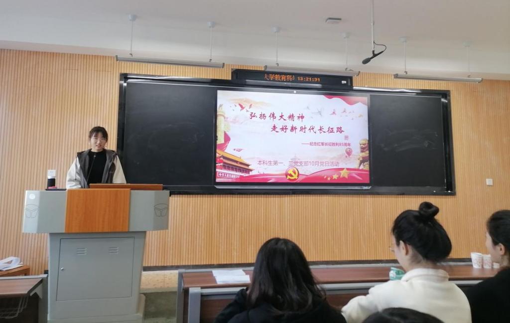 (通讯员 马欣 谭蓉)为纪念红军长征胜利85周年,铭记红军丰功伟绩,弘扬伟大长征精神,10月22日,beat365手机版官网入口本科生党支部在教科院315教室召开以“弘扬伟大精神,走好新时代长征路”为主题的党日活动。