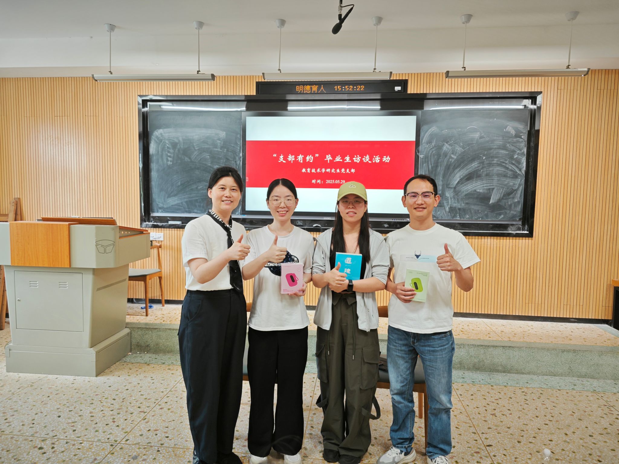 活动最后,简婕老师代表支部为三位毕业生同志送上纪念礼物,并寄语:“你们的故事就是支部的故事,你们的成长就是支部的成长。让我们携手共进,成为更好的自己,建设更好的支部。”