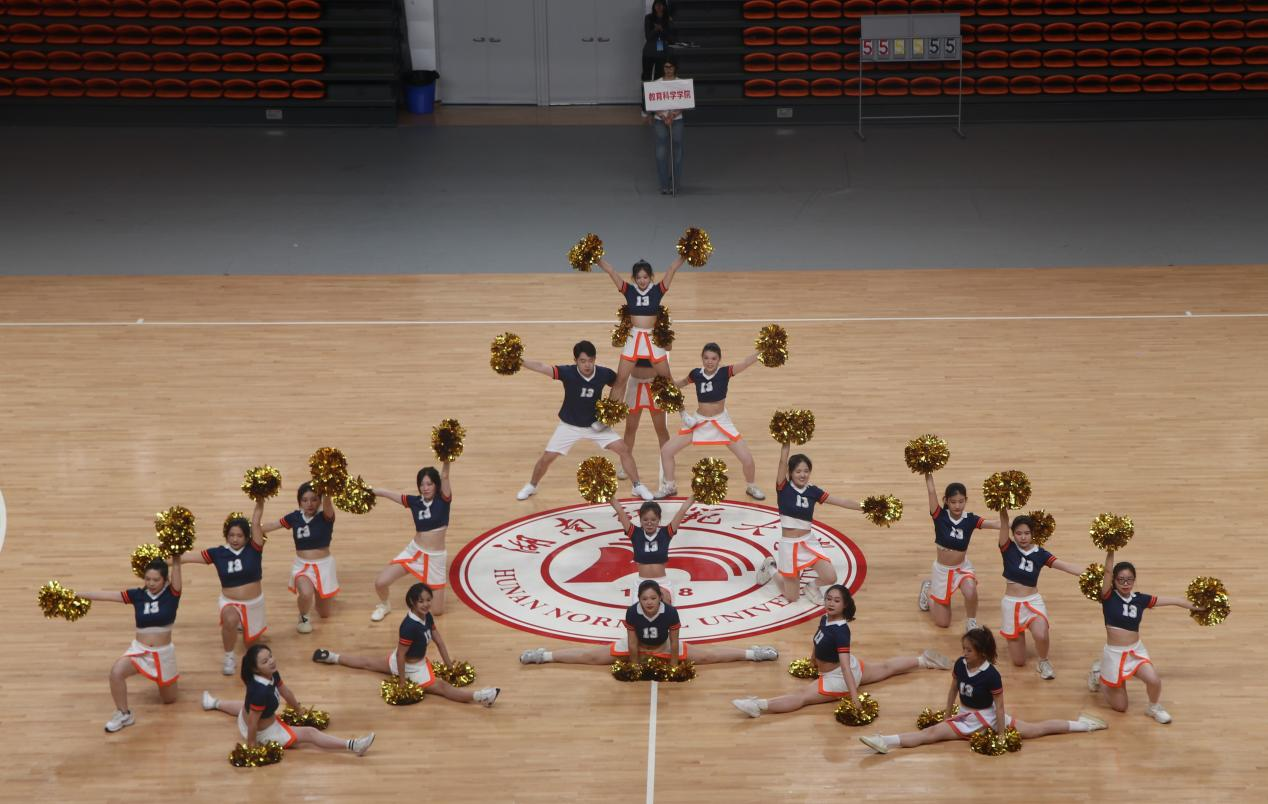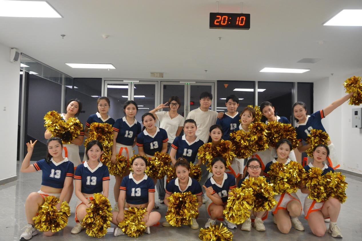 决赛之夜,当蓝白战袍在追光灯下流转,教科院研究生们用她们的表演诠释了力与美的交响。她们用肢体语言讲述着“青春向未来”的主题故事——从初遇挑战的忐忑,到携手突破的坚定,最终奔向星辰大海的豪情。